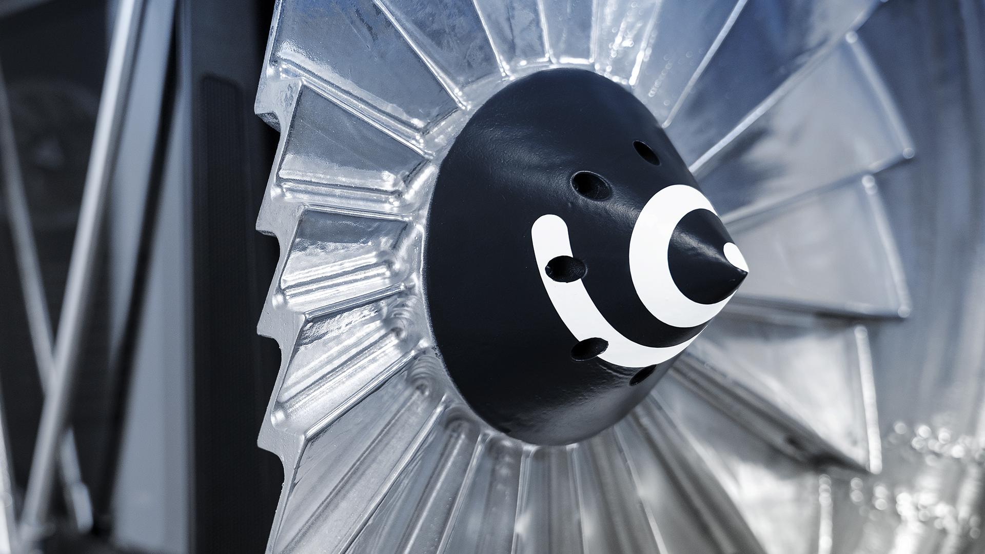 Featuring a cross-section of an aeroplane turbine, our Workshop Wizards made this jet engine come to life in our office. Made with a chrome semi-glossy finish, the turbine holds a custom-built PC and dons the Flight Simulator Logo on the jet engine The front of this custom PC rig is adorned with a Turbofan.