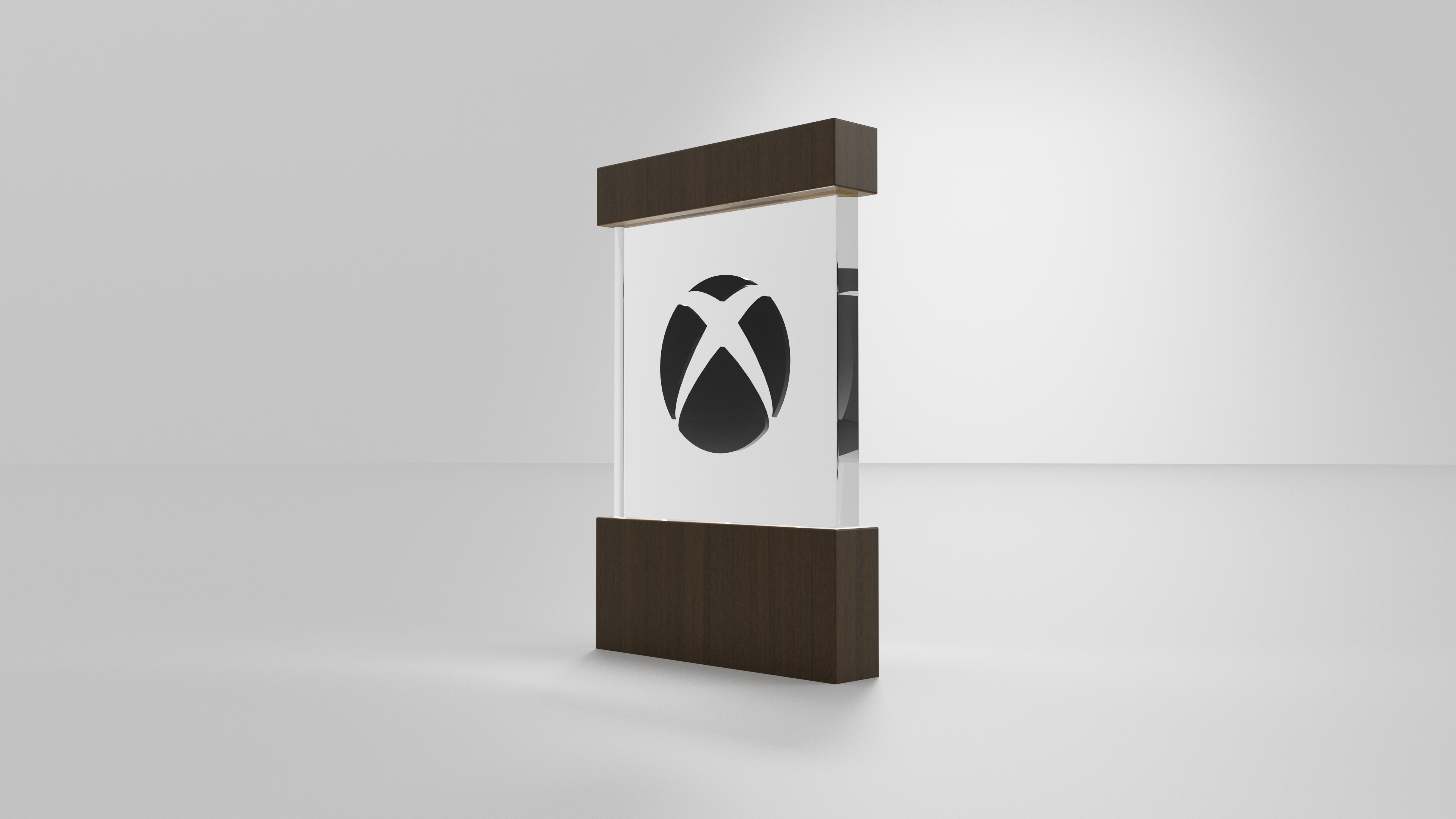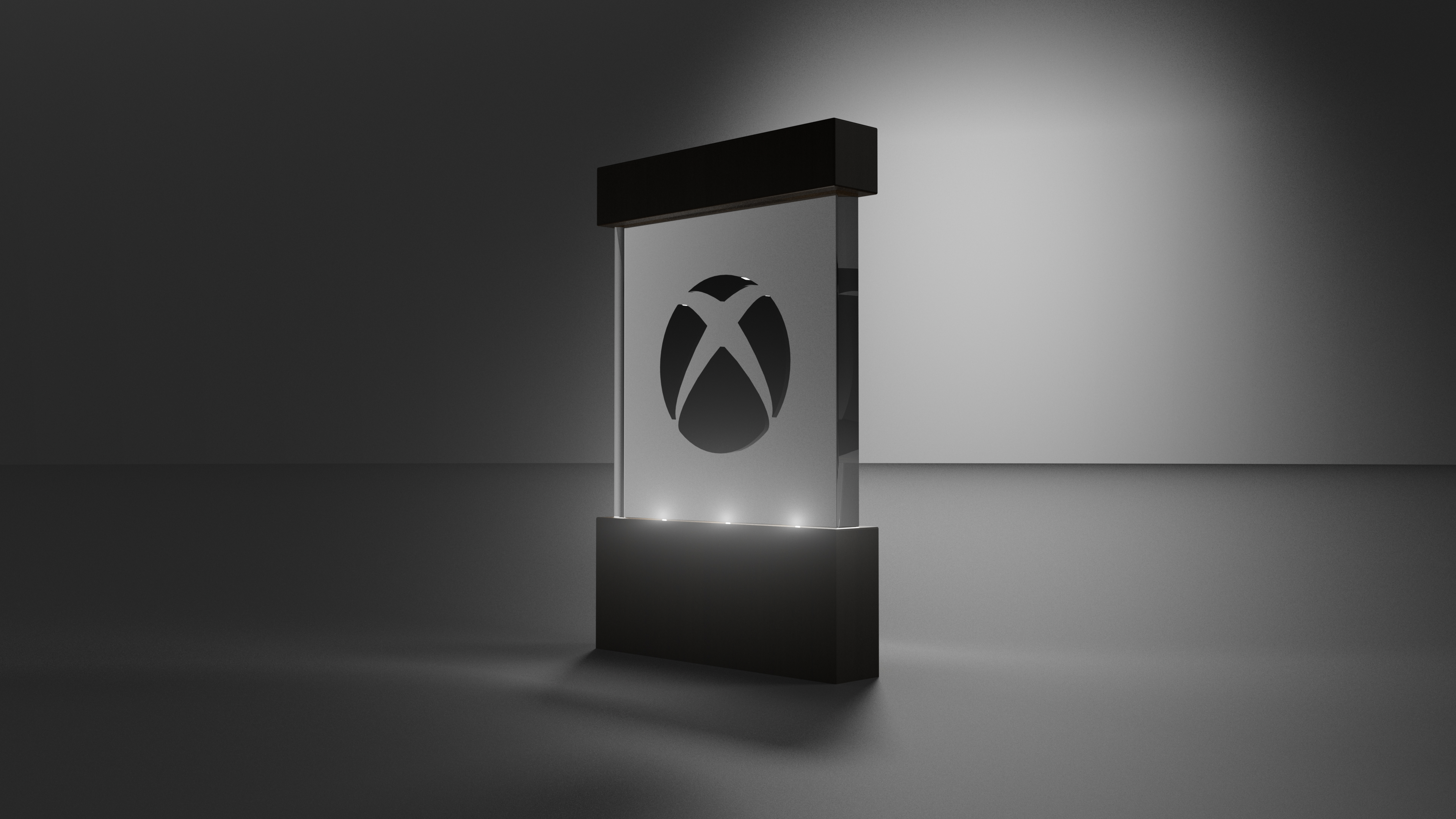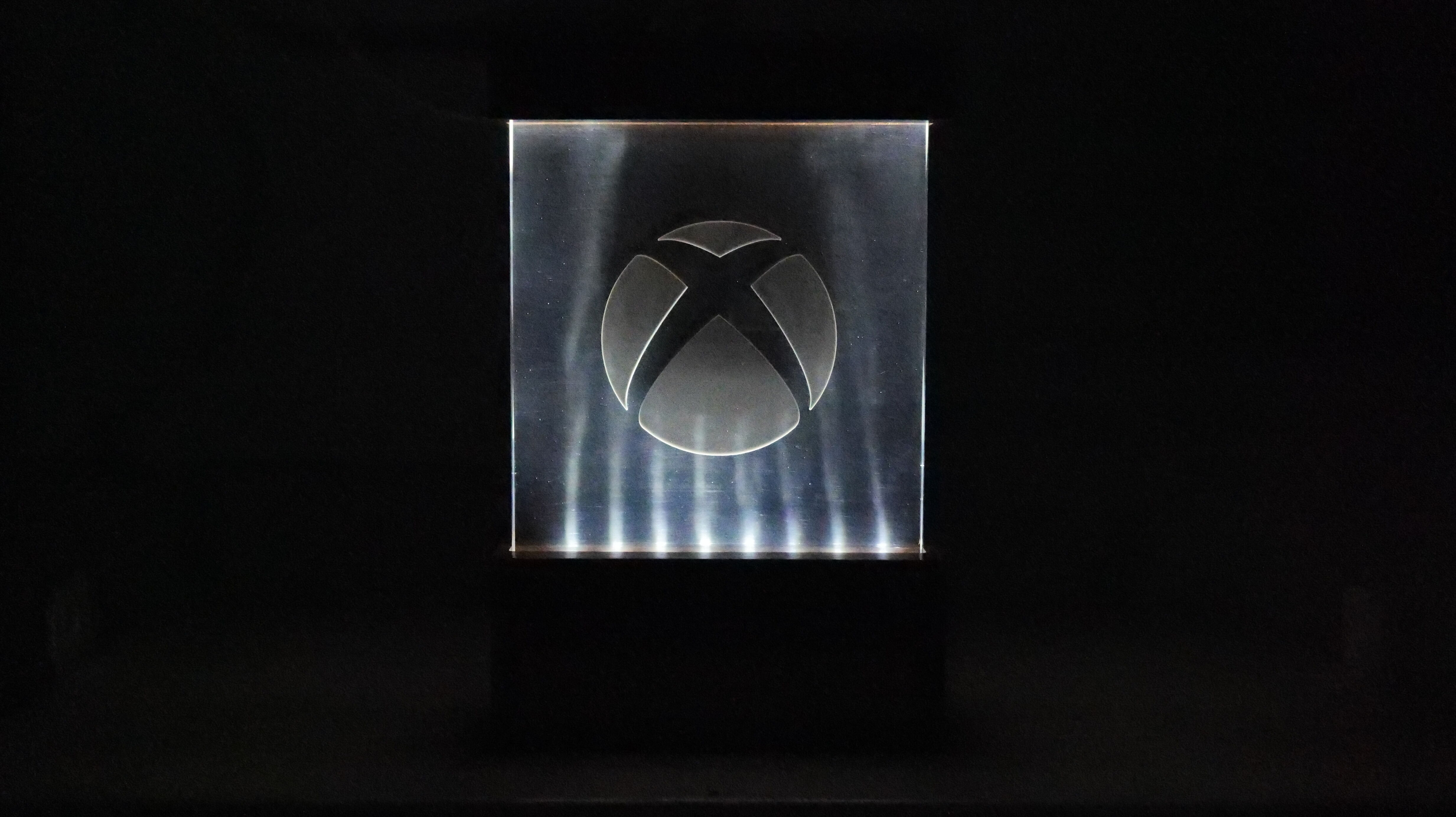 Presenting a one-of-a-kind trophy made of wood and glass, designed in collaboration with Microsoft to celebrate the Xbox Game Pass. This sleek trophy, crafted from high-quality glass, features embedded LED lights that highlight the Xbox logo. The logo is engraved inside the glass, creating a stunning 3D effect.